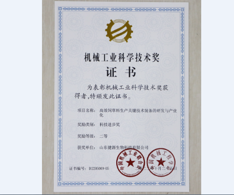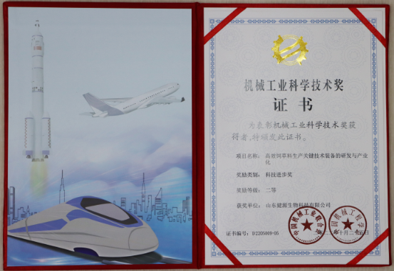 祝賀山東健源生物參與完成的《高效飼草料生產(chǎn)關(guān)鍵技術(shù)裝備的研發(fā)與產(chǎn)業(yè)化》項(xiàng)目榮獲2022年度機(jī)械工業(yè)科學(xué)技術(shù)獎科技進(jìn)步獎二等獎