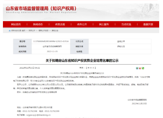 祝賀山東健源生物列入山東省知識(shí)產(chǎn)權(quán)優(yōu)勢(shì)企業(yè)培育名單